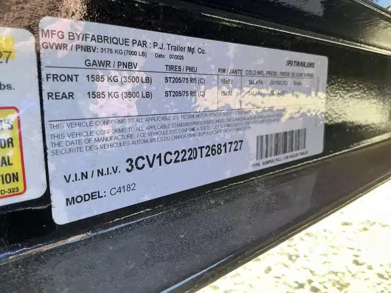 2026 PJ C4X8318 18’ x 83” Car Hauler – 7K GVWR – Toolbox – Black – Stock #268172