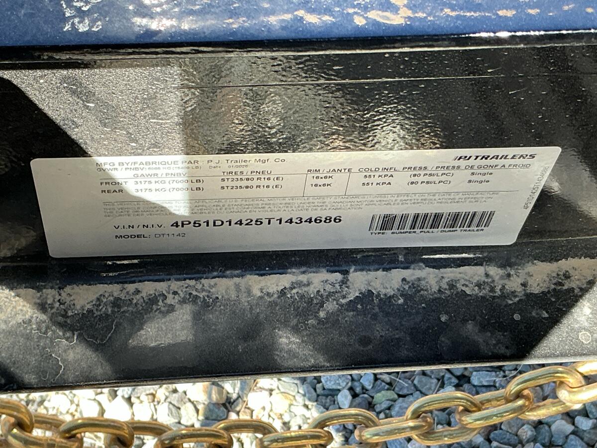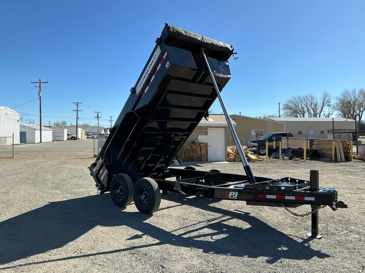 The 2026 PJ Trailers DT1142 83X14 Dump Trailer, available new from our lot in Yerington, NV, brings a new level of robustness to your hauling jobs. This trailer, in pristine black, features a sturdy bumper pull hitch and a hefty GVWR of 16,400 pounds, ensuring it can handle up to 9,895 pounds of payload effortlessly. Its 14-foot length and 83-inch width are perfect for transporting bulk materials or heavy equipment with ease.